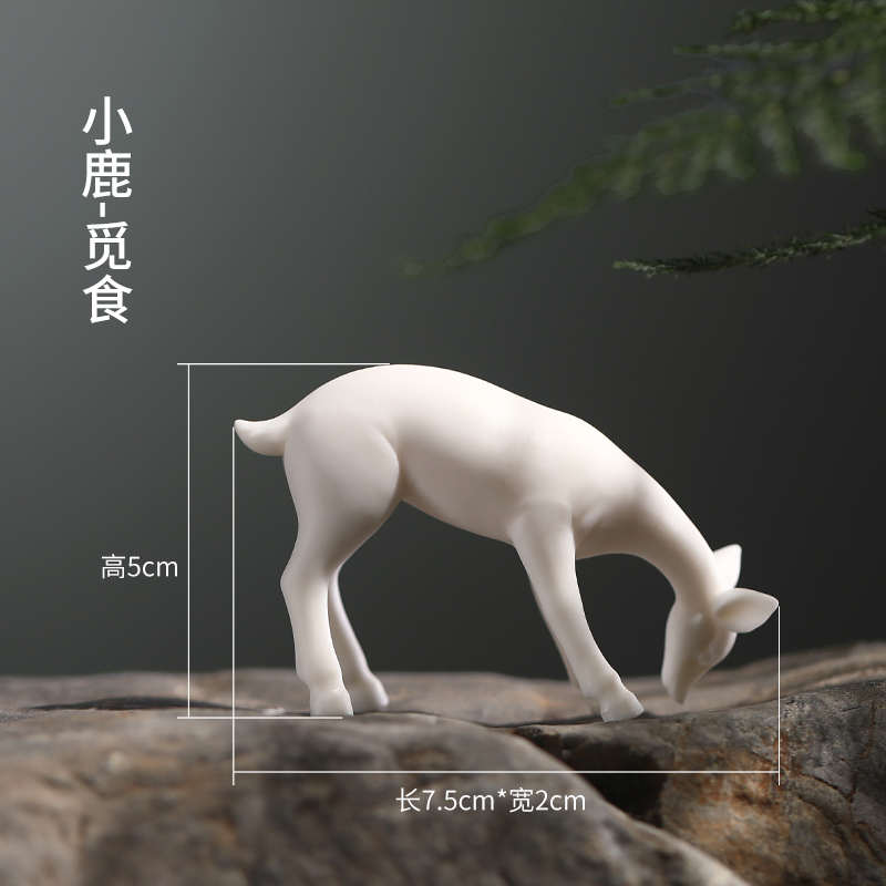 创意白瓷小鹿摆件禅意招财鹿平安鹿微景观造景配件桌面装饰工艺品