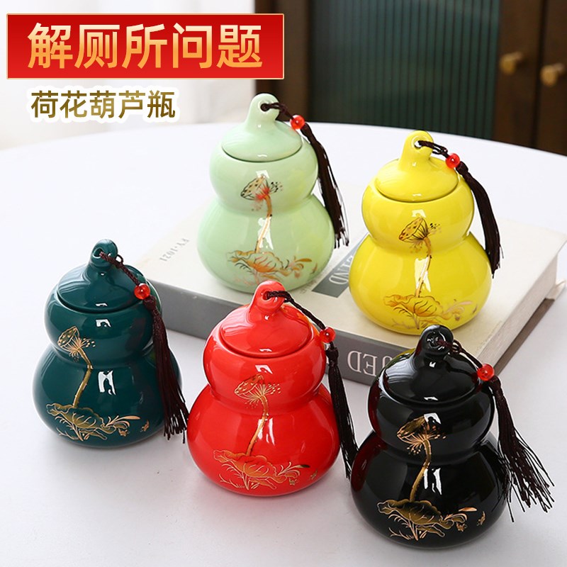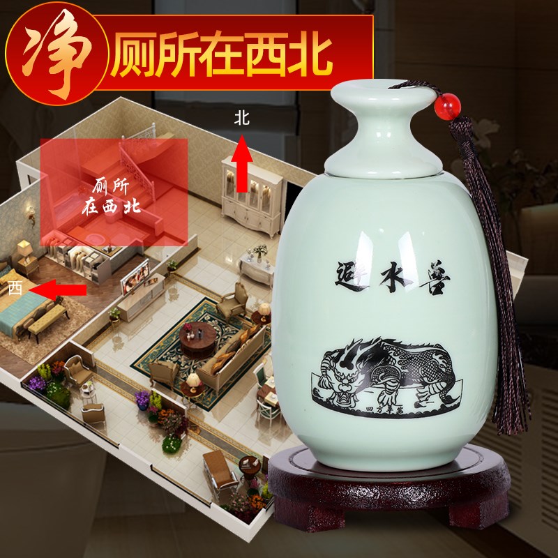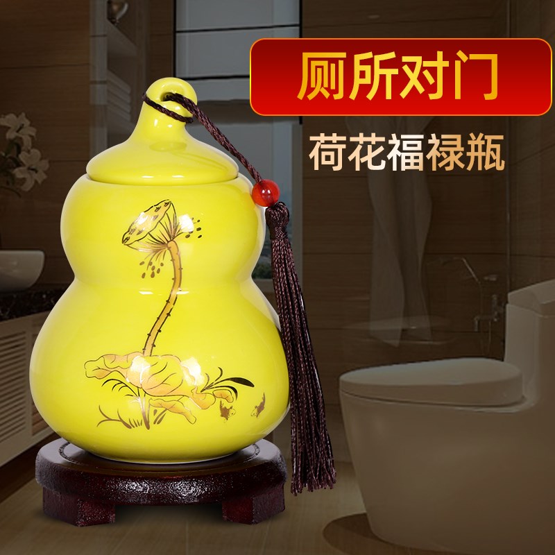 厕所卫生间在西北角避水兽瓶摆件荷花鲤鱼图陶瓷葫芦瓶化解门对门