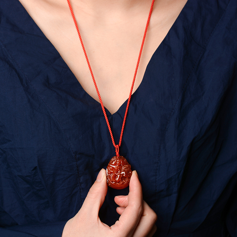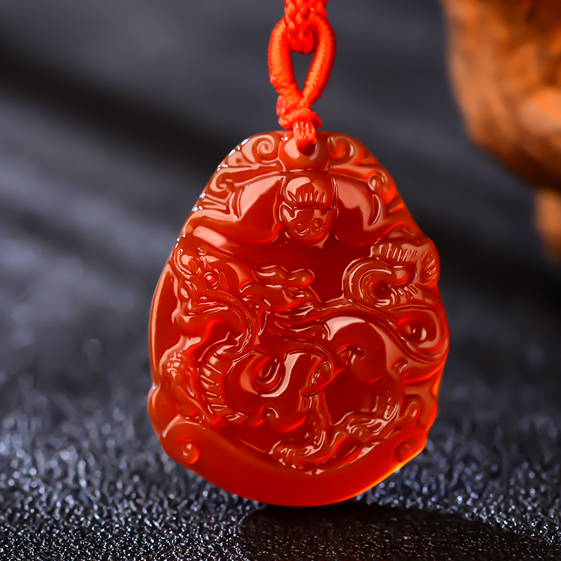 天然红玛瑙十二生肖玉石吊坠女项链男士属龙鼠猴本命年护身符挂件