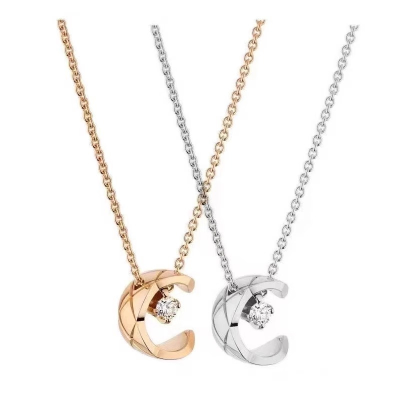 轻奢定制18K玫瑰金项链女小香风coco菱格水冰月项链锁骨链送女友