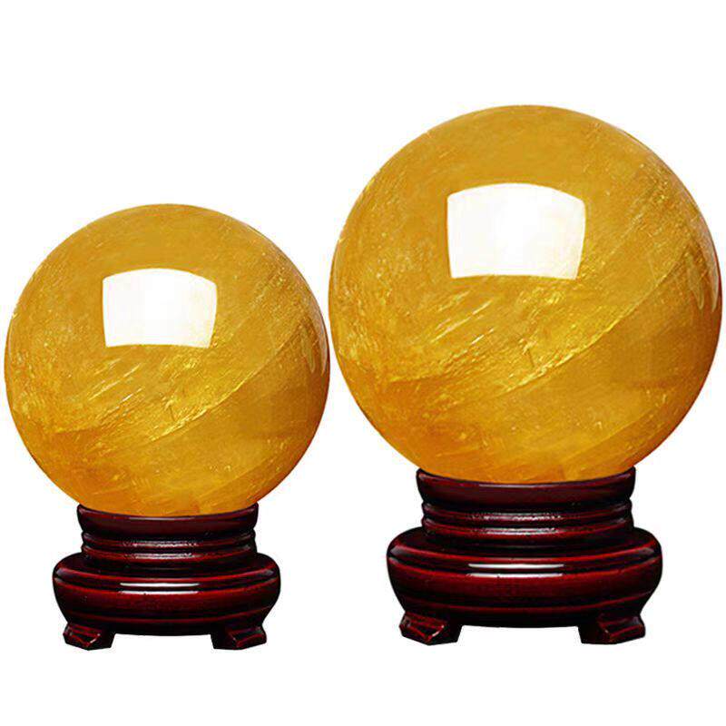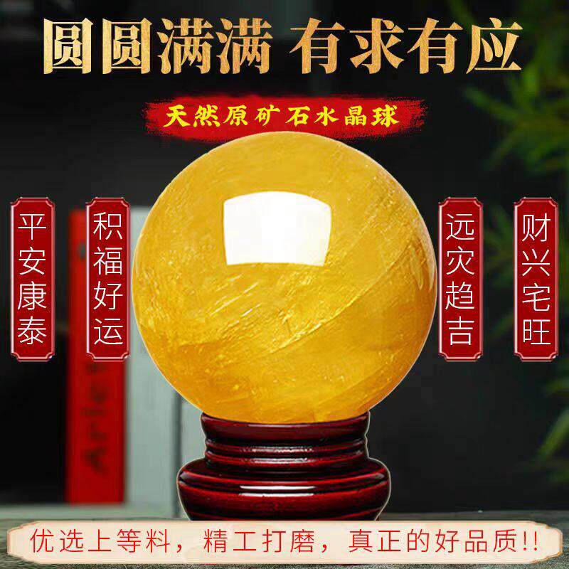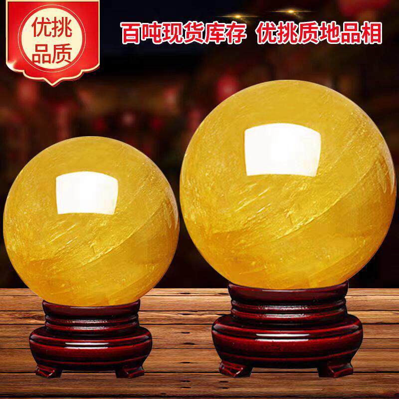 厨房西北角桌面摆件原石黄色水晶球家居摆设天门平安招财客厅化解