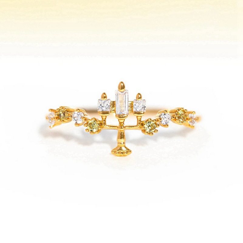 爆款小众设计高级感童话美女与野兽小公主戒指彩色锆石指环女