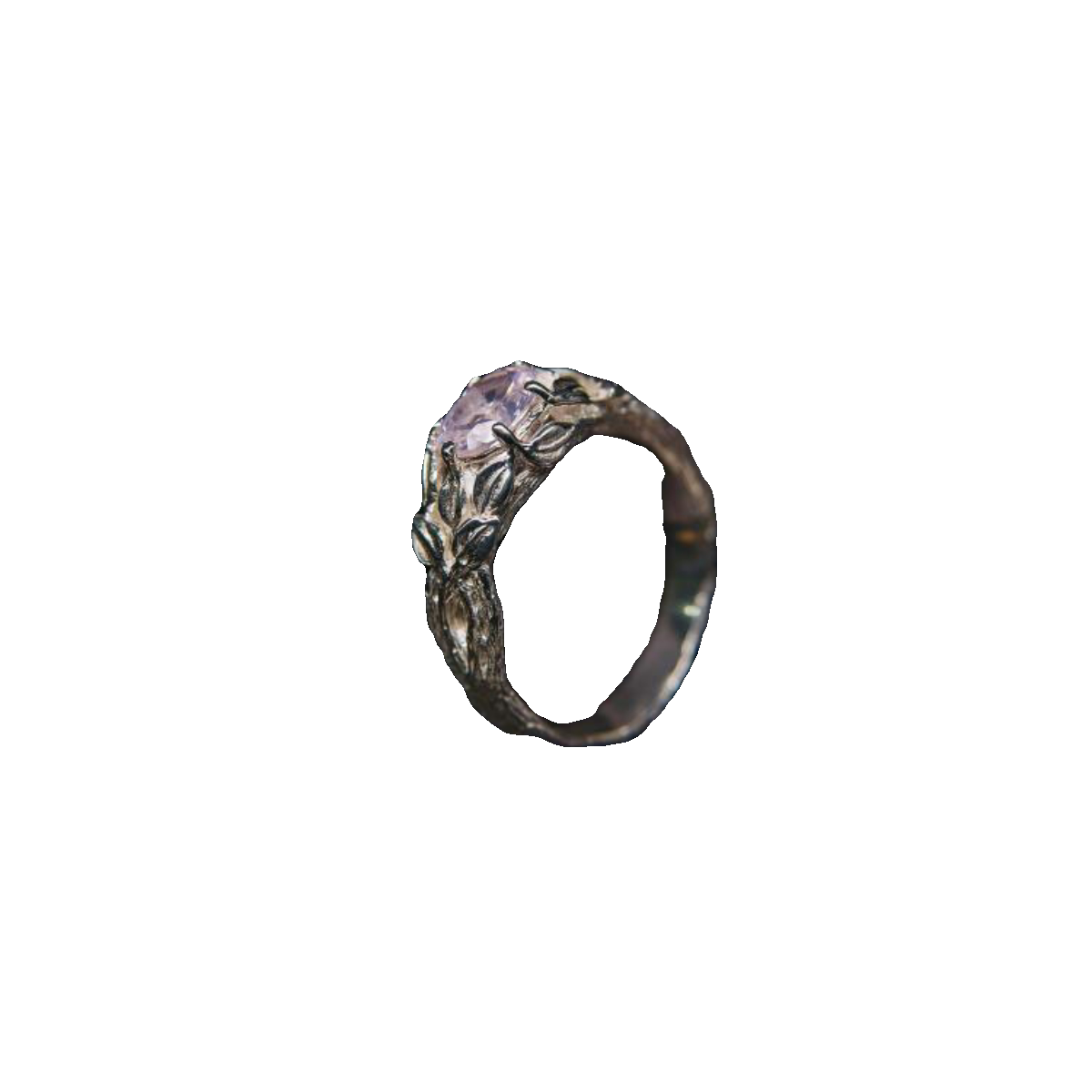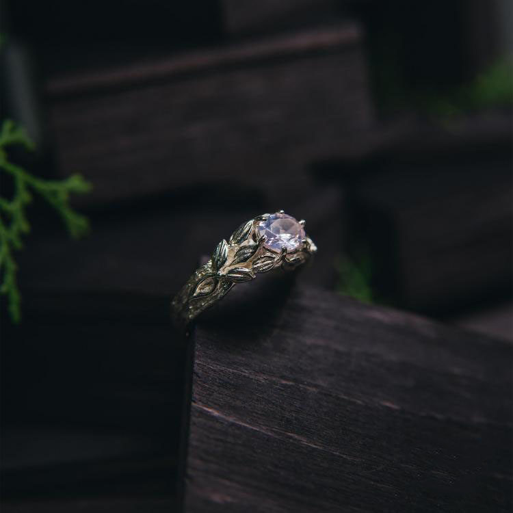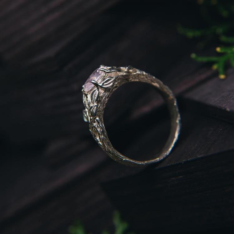 乌克兰代购Quartz◇手作复古精致玫瑰石英镶嵌花卉银叶纯银戒指
