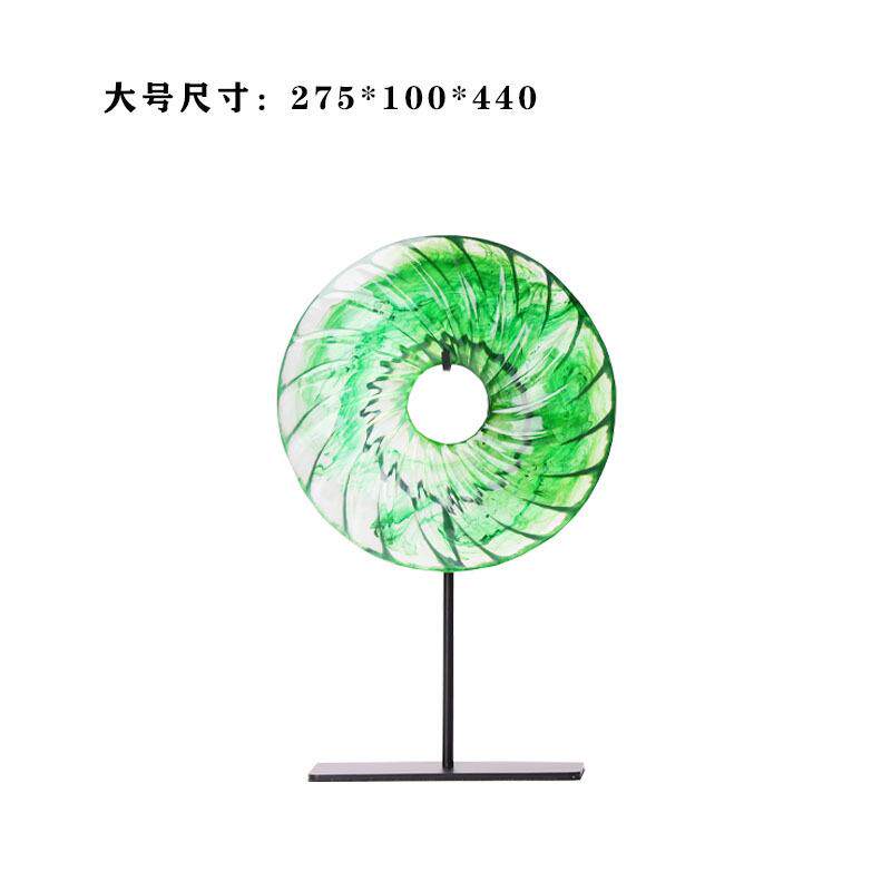 创意新中式现代透明绿色平安扣摆件客厅茶几书桌玄关家居饰品轻奢