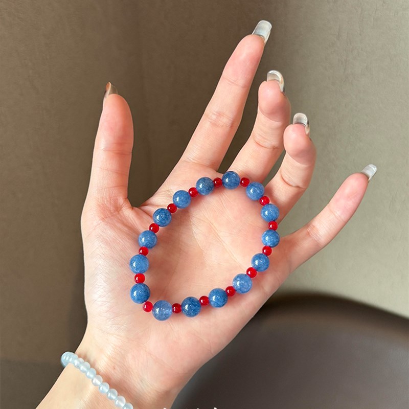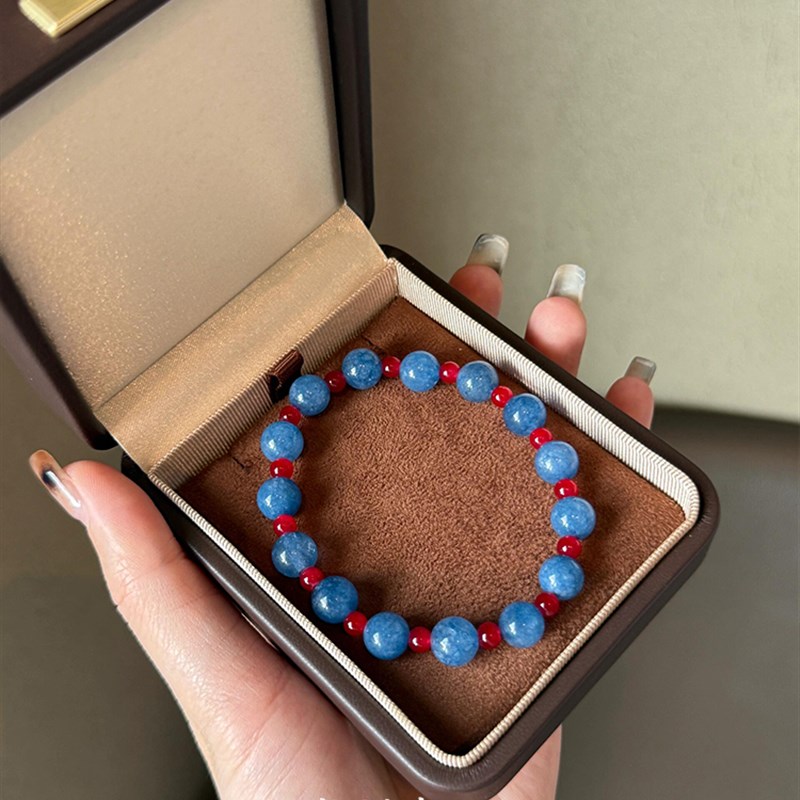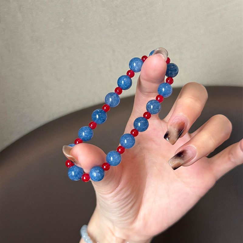 绿色Ni江夏中国风红蓝对比蓝玉心手链,新的中国风,可访问的豪华,