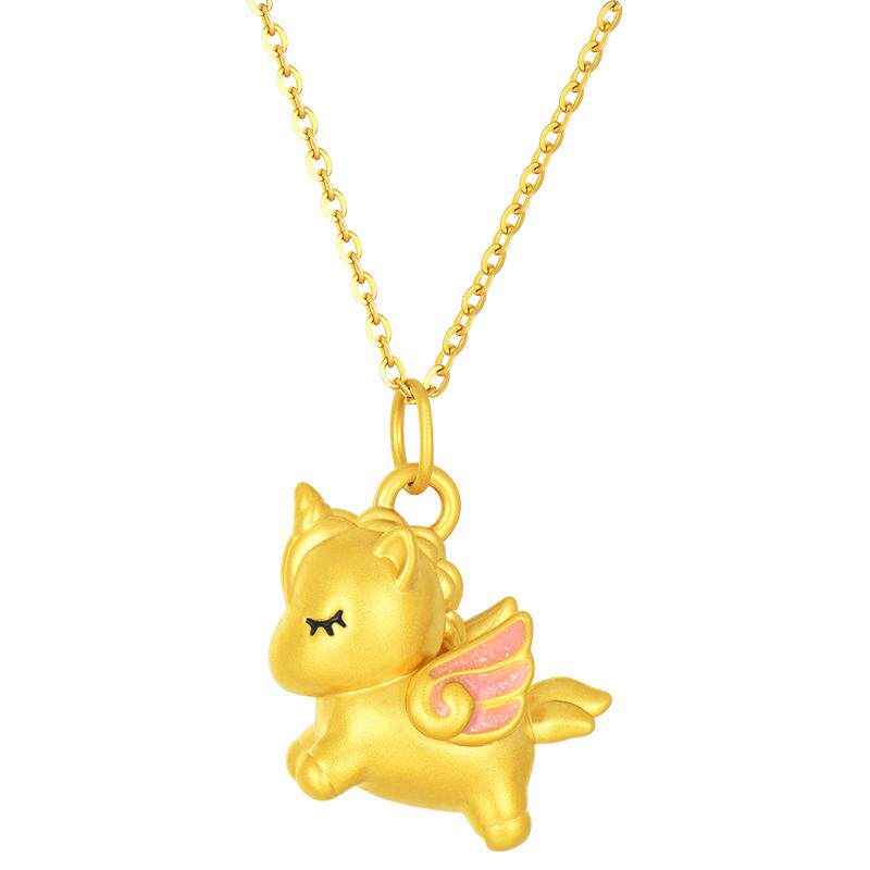 周大生黄金吊坠足金独角兽项链挂坠3D硬金多巴胺节日礼物送女友