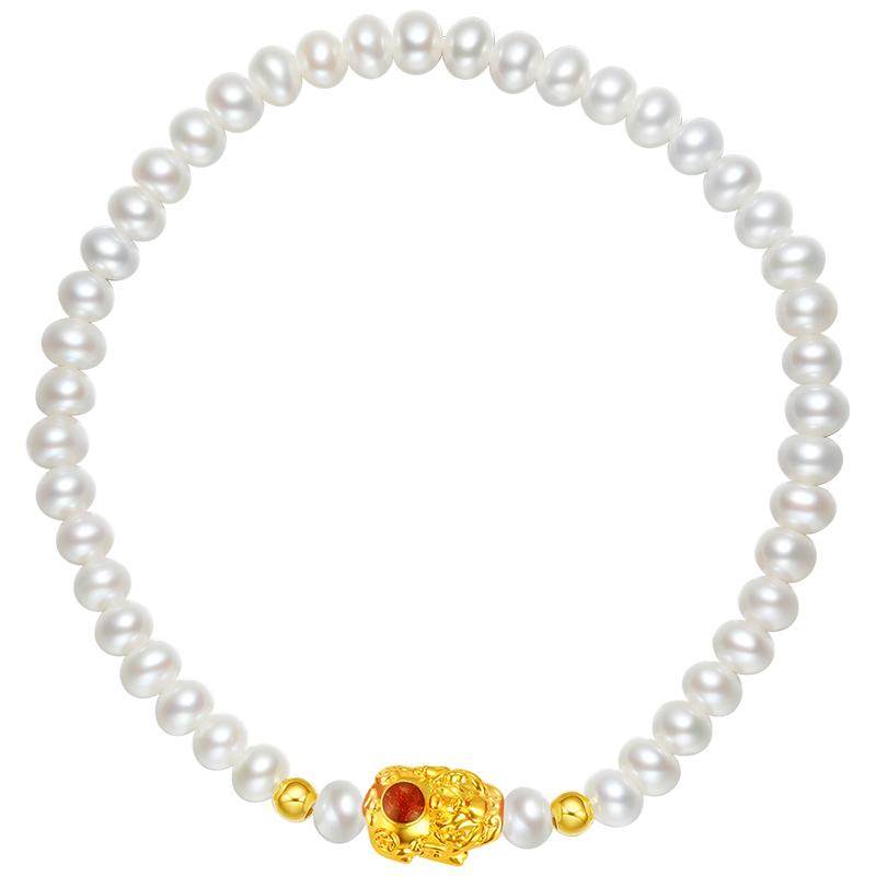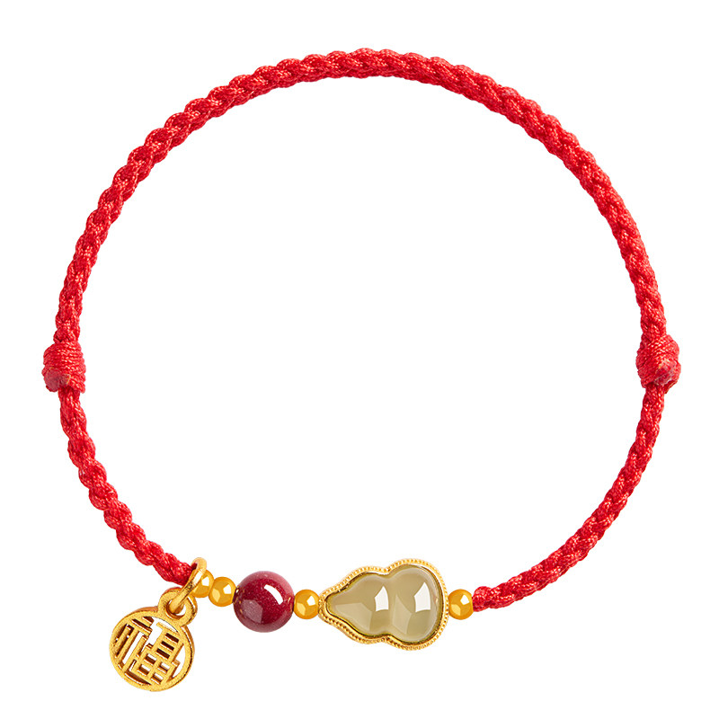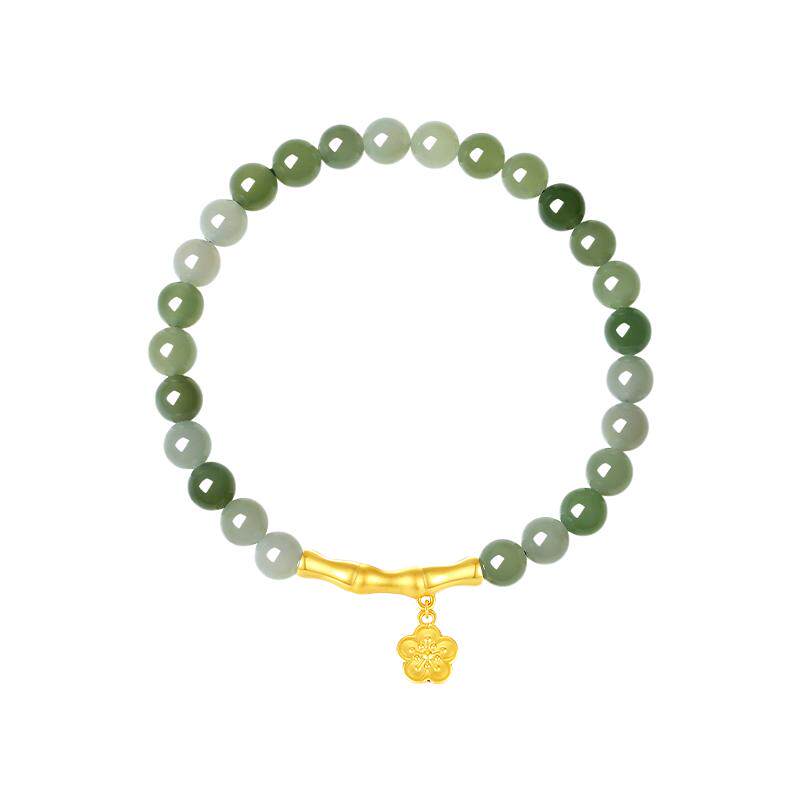 周大生黄金镶玉手串女足金和田玉福运莲莲手链送女友妈妈生日礼物