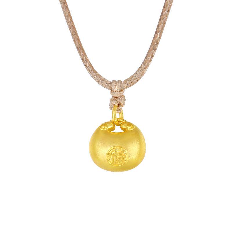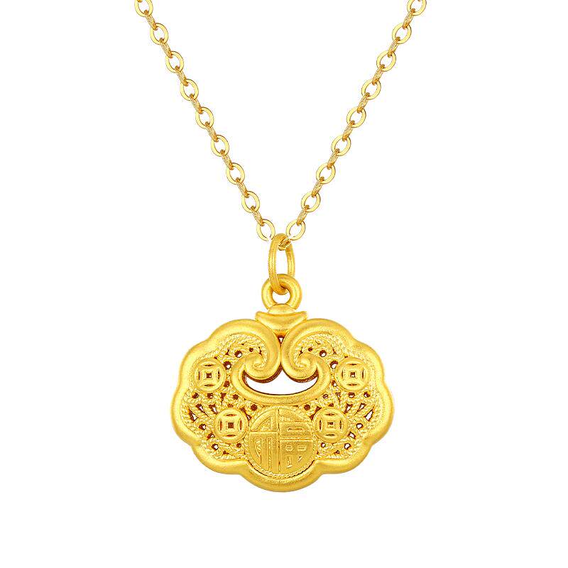 周大生黄金吊坠女足金如意福锁包挂坠素金项链坠节日礼物送女友