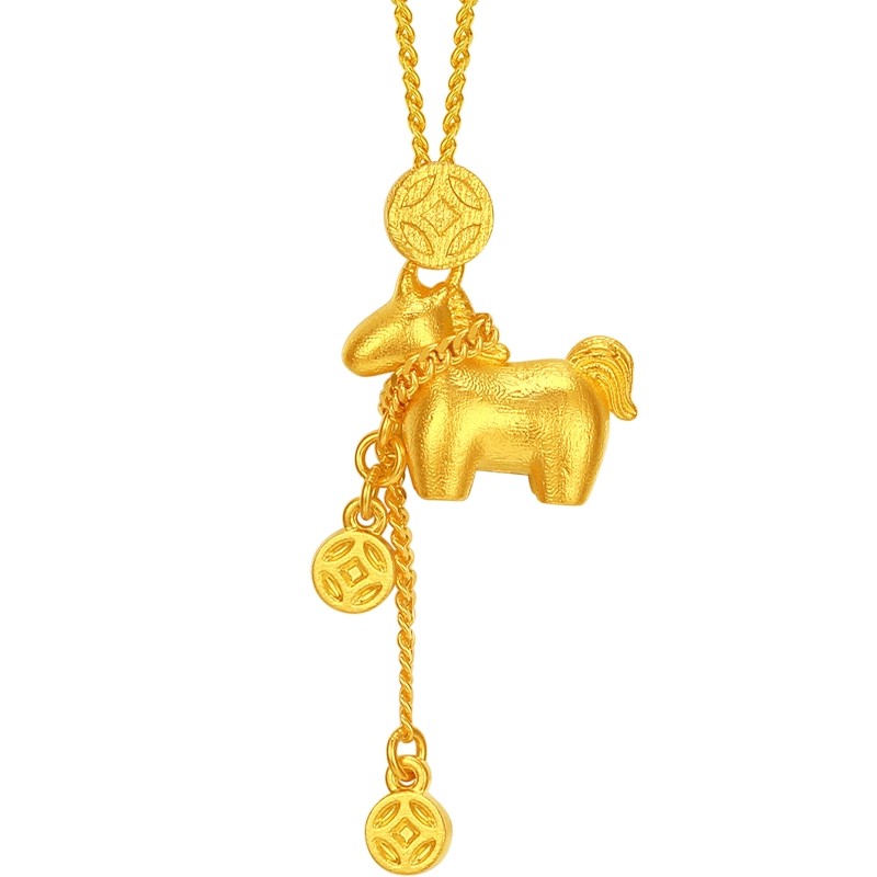 周大生黄金吊坠足金独角兽项链挂坠3D硬金多巴胺节日礼物送女友