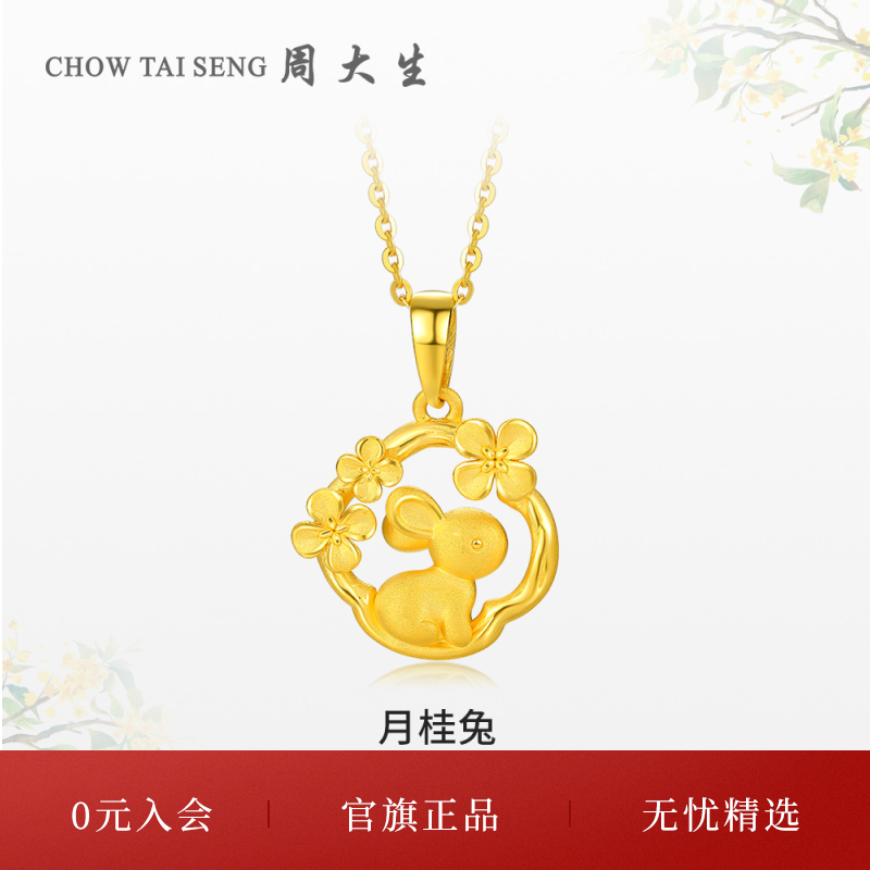 周大生黄金吊坠硬金兔黄金月桂兔挂坠足金项链坠节日礼物送女友